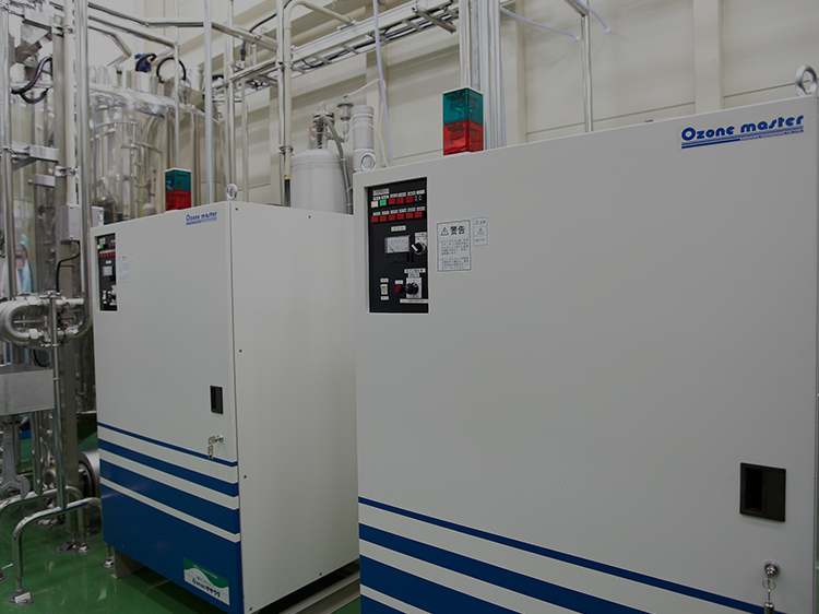 オゾン殺菌と最終濾過 オゾン処理により徹底的な殺菌消毒を行なったあと、 0.2ミクロンのセラミックフィルターによって最終の濾過を行ないます。